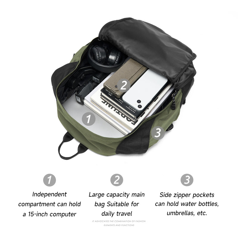 Mochila robusta con compartimentos expandibles, bolsillos de malla laterales y correas de compresión. Diseñada para exploradores urbanos y escapadas outdoor.
